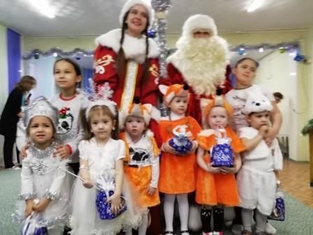 Впервые самые маленькие воспитанники группы раннего развития стали участниками новогоднего праздника «В гости к нам Снегурочка пришла». Снегурочка пришла к малышам не одна, а привела с собой Зайчика и Лисичку. С восторгом встретили ребята сказочных персонажей и вместе с ними водили хороводы вокруг ёлочки, танцевали с погремушками, играли в весёлые игры. Подарки от Деда Мороза, которые принесли Лисичка и Зайчик стали для детей приятным сюрпризом.