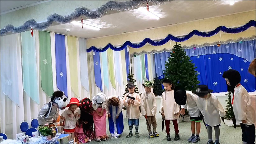 Для воспитанников первой младшей группы Новый год открыл сказочные двери под названием «Как ежик Ерофей попал в новогоднюю сказку». Гостями этого праздника стали лесные жители Зайчик, Лисичка и ежик Ерофей. Много радостных эмоций доставила ребятам игра с Зайчиком в снежки. А вот играя с Лисичкой, ни один малыш не смог попасть в её лапы, никого не смогла догнать рыжая плутовка. Ёжик Ерофей тоже не давал скучать детям, играя с ними в веселые подвижные игры. Дед Мороз и Снегурочка, самые главные гости новогоднего праздника, тоже приехали погостить к малышам в их сказочный лес, чтобы поиграть с ними в веселые игры, покатать их на своих санях вокруг елочки. В конце праздника всех ожидал приятный сюрприз - Дед Мороз подарил детям долгожданные подарки.