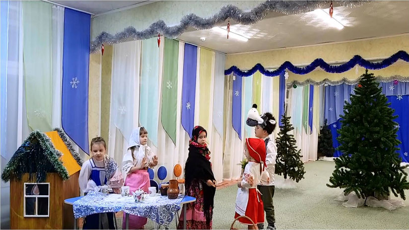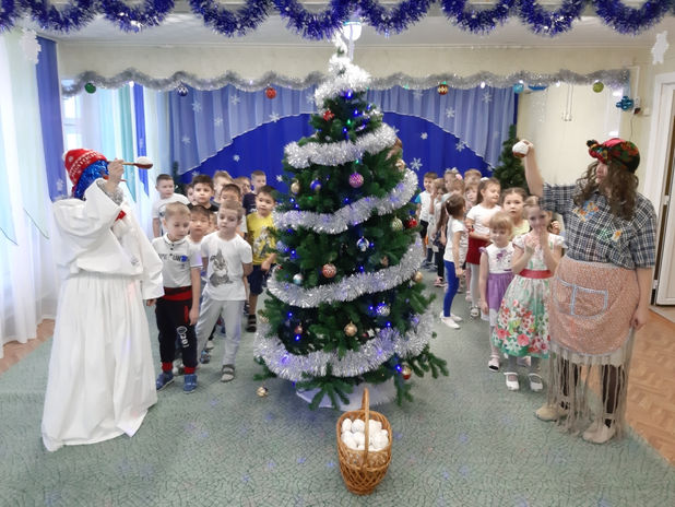 Ребята средней группы на новогоднем утреннике побывали в самом настоящем «Магазине новогодних игрушек». Накануне Нового года Снегурочка открыла магазин ёлочных игрушек. За подарками для своих детей спешили в магазин мамы и папы, бабушки и дедушки. Как по волшебству из красивой подарочной коробки появлялись и оживали куклы, озорные снеговики танцевали весёлый танец с метёлочками, и маршировали мужественные солдатики. Но вдруг в магазин ворвалась Баба Яга со своим сыном Ягусиком. Капризный Ягусик стал требовать себе в подарок самого Деда Мороза. Снегурочка отказала таким покупателям, ответив, что Дед Мороз не продаётся, а приходит в гости к ребятишкам, которые ждут его, наряжают ёлку, читают стихи и водят хороводы. Рассердившись, Баба Яга с сыном задули огоньки на праздничной ёлке. Но добро всегда побеждает зло! Прекрасные ёлочки и нежные снежинки отыскали Дедушку Мороза, который развеял злые чары Бабы Яги и вернул огоньки. Вместе с детьми Дед Мороз играл, танцевал, слушал стихи. Даже «маленький» Ягусик прочитал Дедушке стихотворение. Прежде чем закрыть магазин, Дед Мороз со Снегурочкой поздравили всех с Новым годом и подарили детворе сладкие подарки!